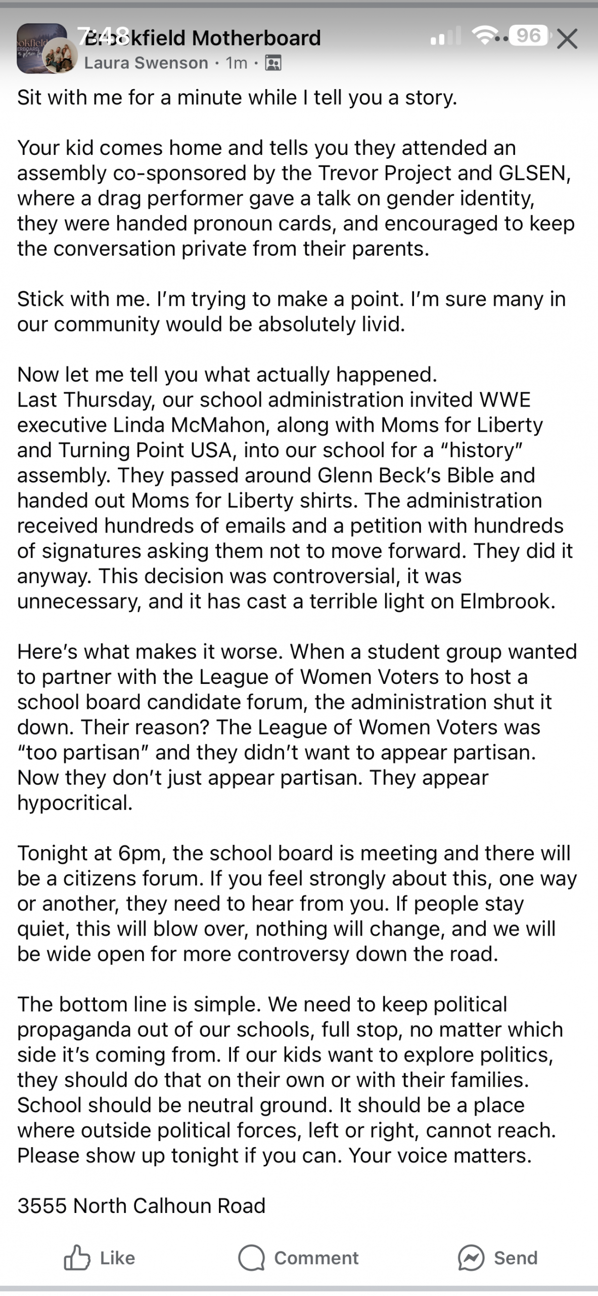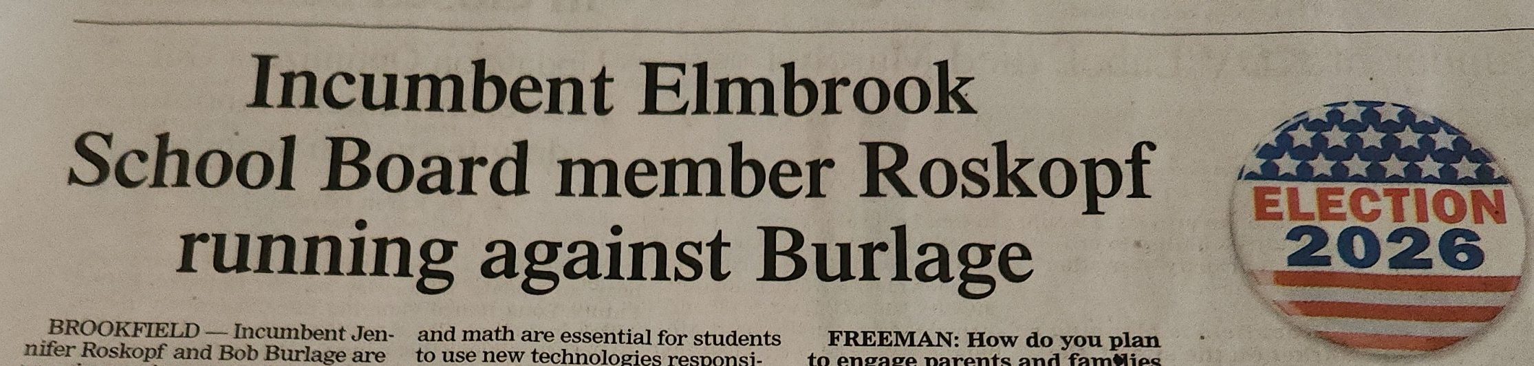 “Elmbrook is an incredibly strong school district that needs strong Leaders with experience in both the world of Education and running a large organization. I bring both strong and decisive Leadership with a heart for the children in public education. Over the next few years, the Elmbrook school board will be making strategic and important decisions that will impact the members of the community, the teachers and staff at Elmbrook, and the students that attend everyday.