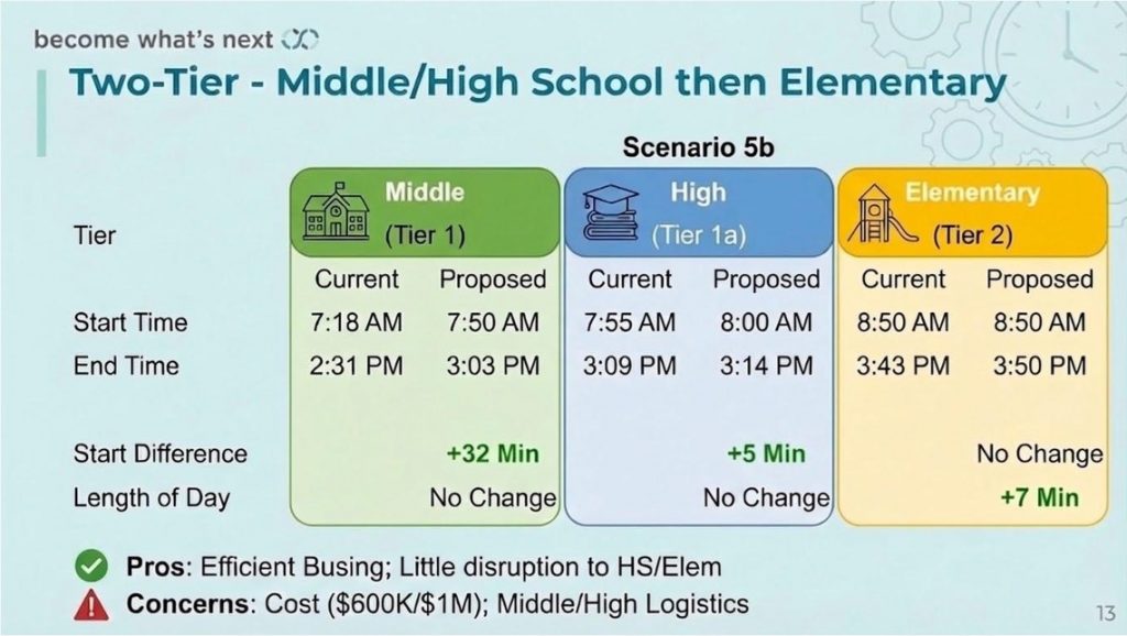 This isn’t a hypothetical. Board members have voiced support for this approach. The decision will be made in the coming months with the newly elected board and could directly impact your child’s daily routine and your family’s schedule.